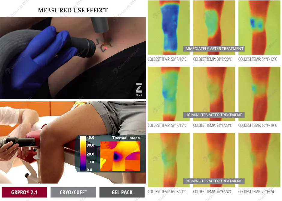 Toisin kuin muut jäähdytysmenetelmät, kuten kosketusjäähdytys, kryogeenisuihke tai jääpakkaukset, kryo -jäähdytyskone laskee ihon lämpötilaa nopeammin, vähemmän ihon palovammoja ja pitää jatkuvan annoksen koko käsittelyajan ajan.