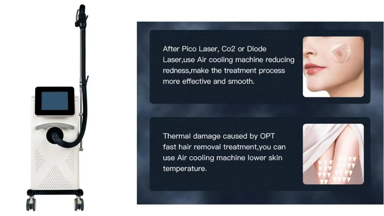 1) Jatkuvasti jäähdytysilman kohdentamiseen kudokseen, minimoimalla kipu ja lämpövaurio laser- ja IPL -käsittelyjen aikana ja väliaikaisen helpotuksen aikaansaamiseksi kosmeettisiin injektioihin.