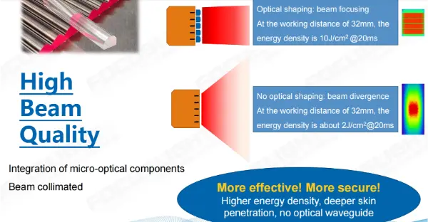 Korkeampi energiatiheys: FAC tarkentaa säteen varmistaen, että lähes 99 % tehosta saavuttaa karvatupen hajoamisen sijaan.