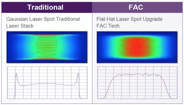 FAC-tekniikkaa käyttävät puolijohdelaserit: vähentävät tehokkaasti laserlähdön erotuskulmaa; tekevät lähetetystä lasersäteestä tasaisemman ja sen energian keskittyneemmän; ja lieventää optisen palautteen aiheuttamia laservaurioita.
