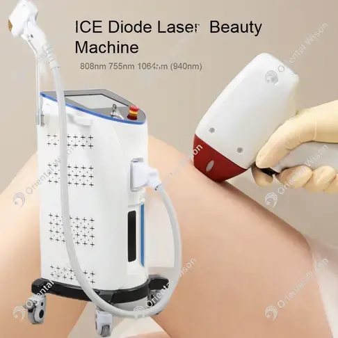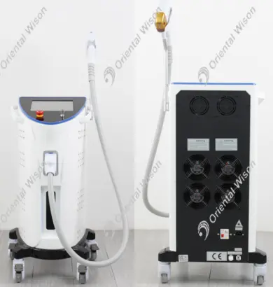 Yksittäinen kahva Kolme aallonpituus diodilaserkarvanpoistokone on erityinen laser, jonka yhdistelmä on 3 aallonpituutta 1064+755+808nm, joka sopii kaikille ihotyypeille.